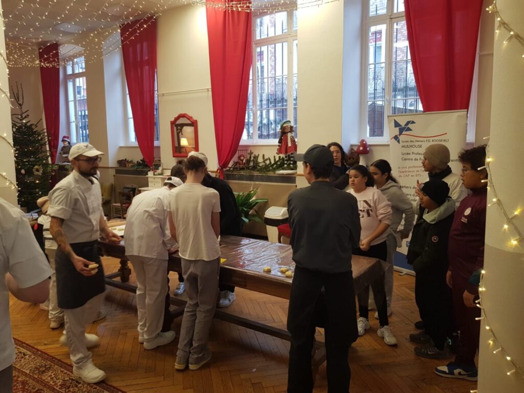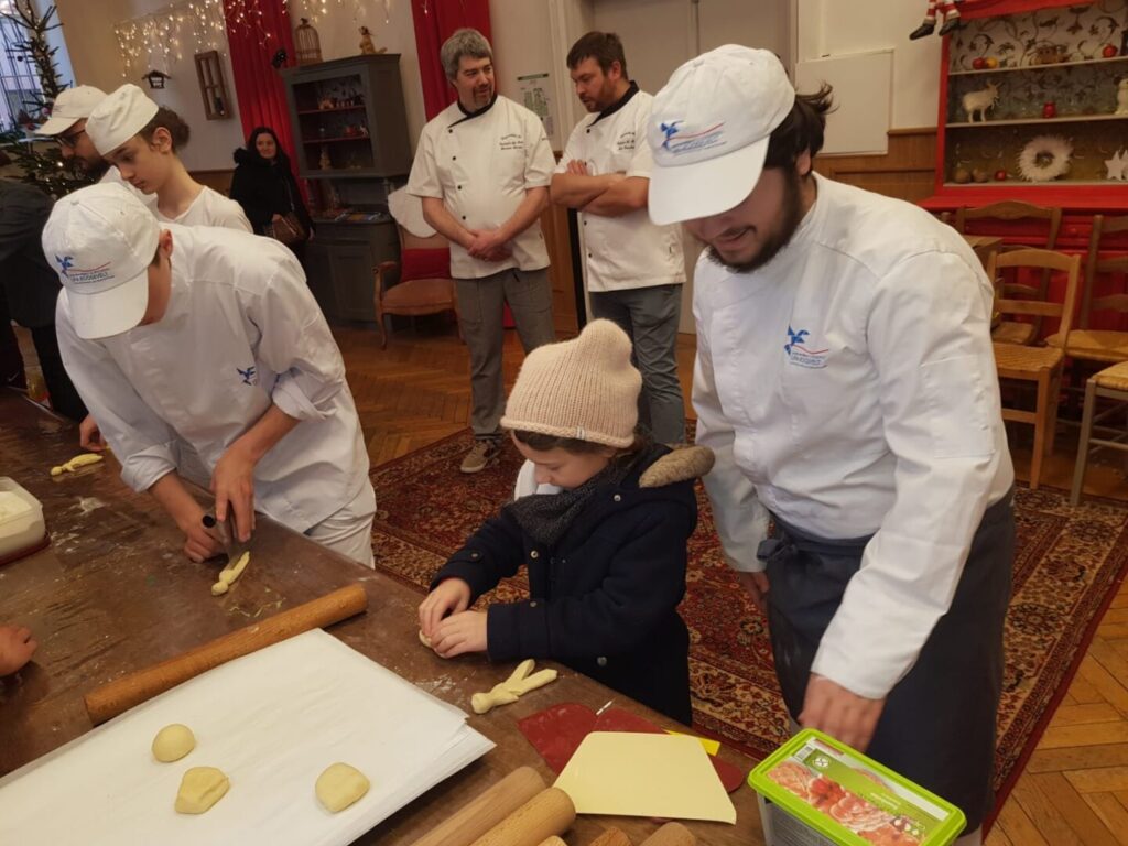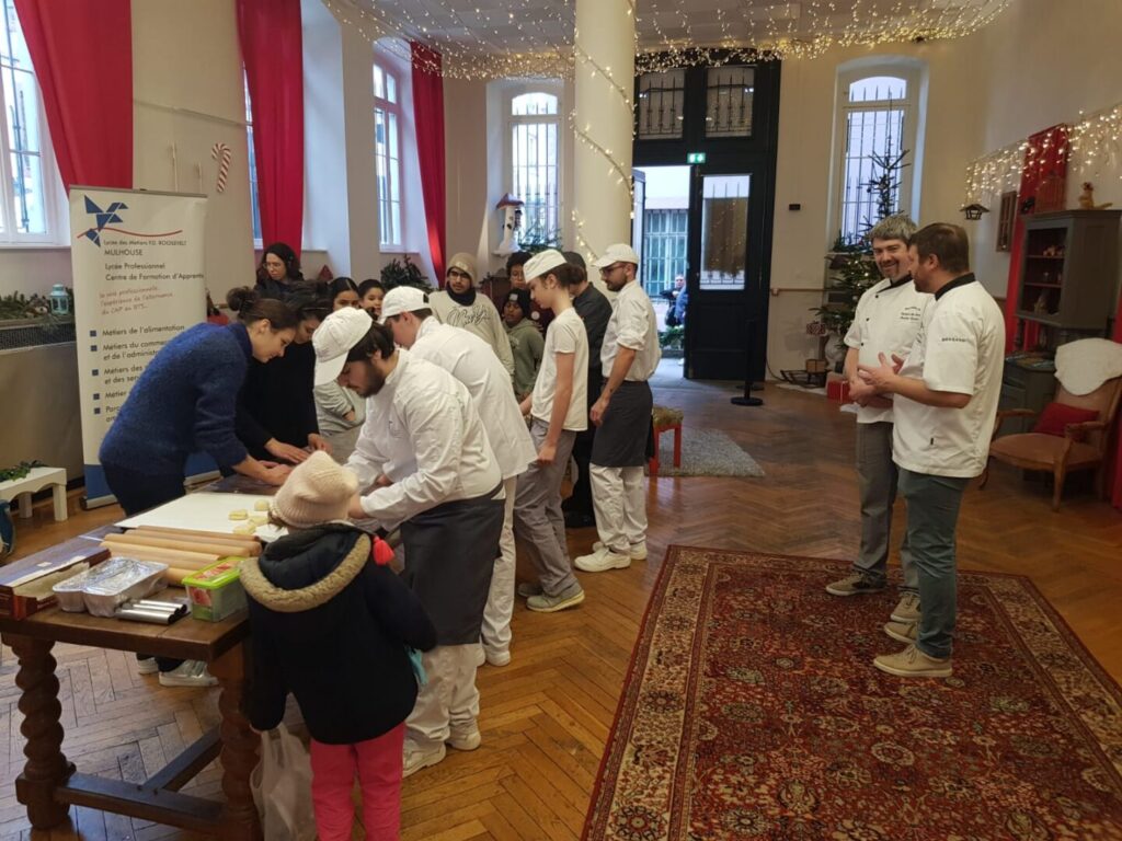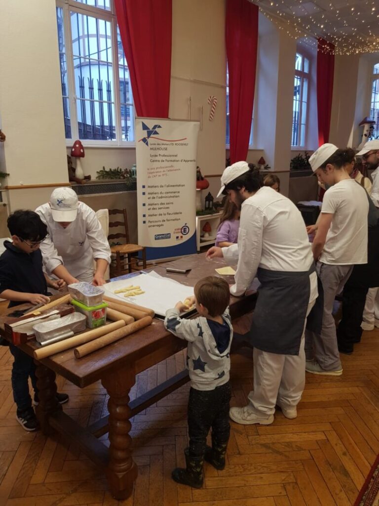 Dans le cadre des animations du Marché de Noël de Mulhouse, les apprentis boulangers de l’UFA ont pris part à un atelier de confection de manalas destiné aux enfants.