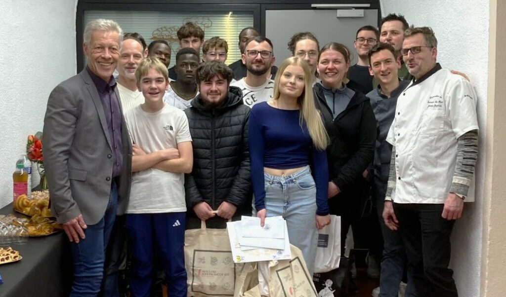En présence d’Eric Simonin, directeur de l’UFA (Unité de formation par l’apprentissage), de Noël Schirmer et de Xavier Duringer leurs professeurs, de Corinne Lécaille coordinatrice pédagogique, les élèves ont accueilli Pascal Flury président de la corporation des boulangers venu les féliciter pour leur travail et leur motivation et leur offrir des bons d’achat autres petites surprises.