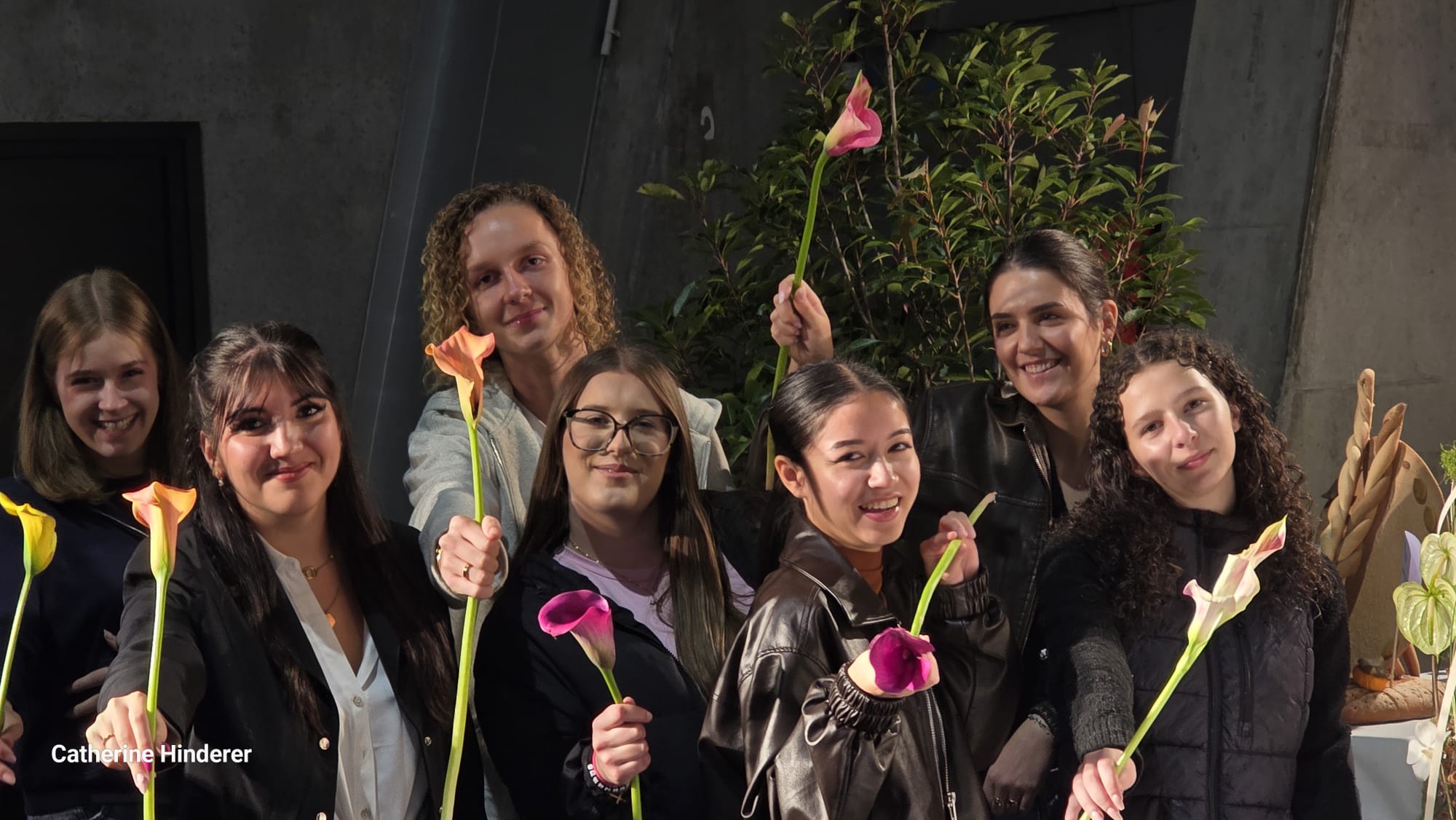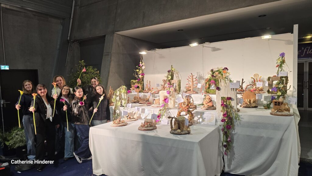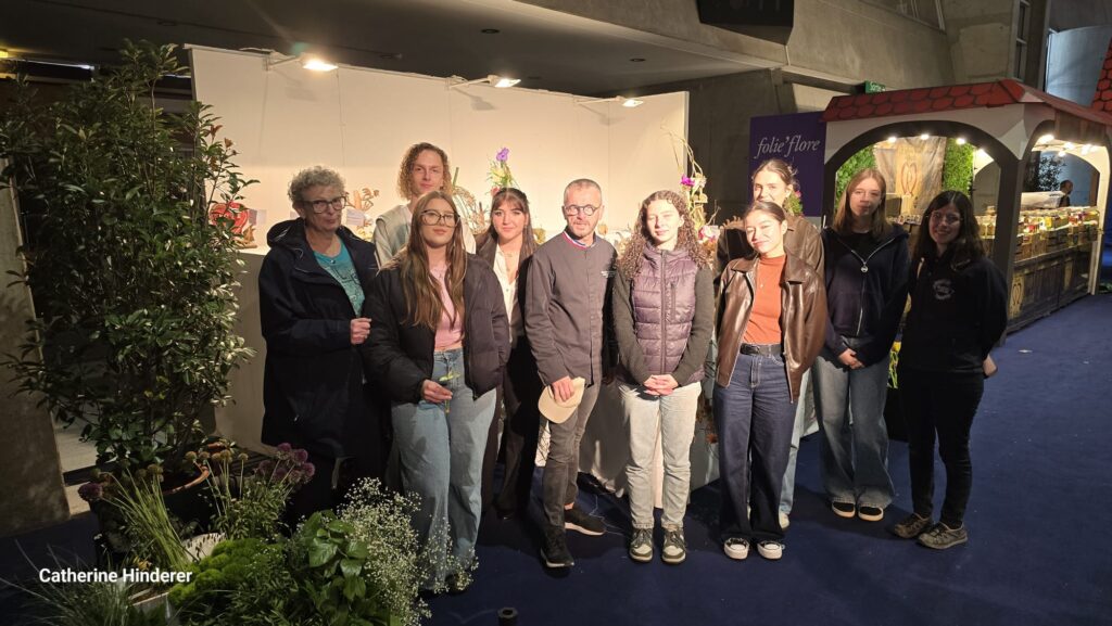 Classe de 1BP Fleuriste, avec Mme HINDERER, professeure de la section Fleuristerie et Benoit SAINT AMAND, MOF Fleuriste
