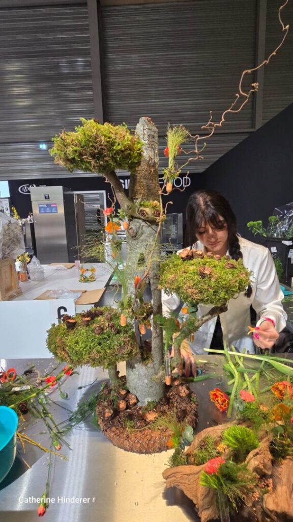 Le concours réunit également des apprentis fleuristes qui doivent confectionner un décor de buffet, un centre de table, un mange debout ainsi qu’un décor de bouteille. Le thème général des épreuves 2026 est l’Arte Povera.